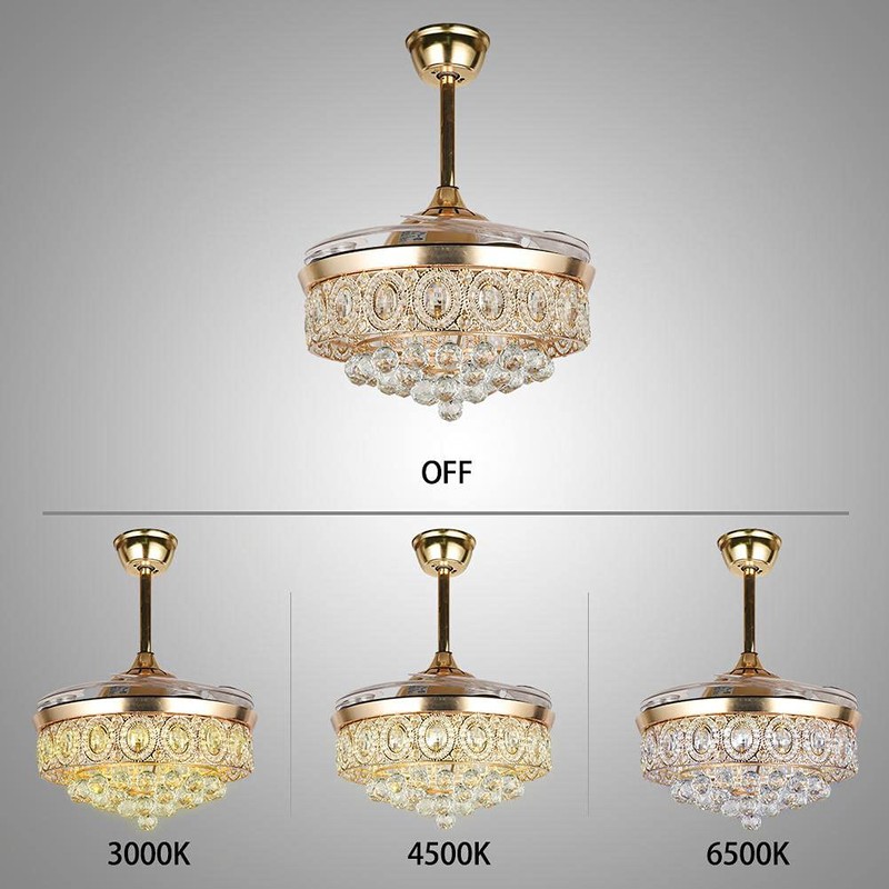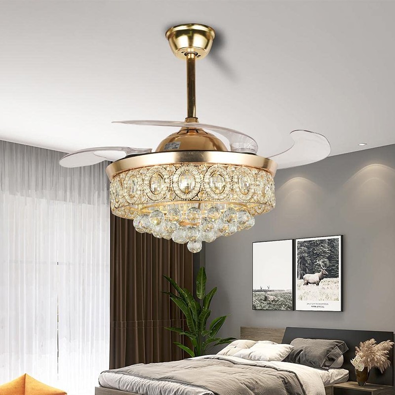- [Crystal Retractable Ceiling Fan]: Chandelier and fan use top K9 crystal,the crystals are just clear and twinkling and have a subtle bit of color that softens the light.Suitable many styles of decoration.