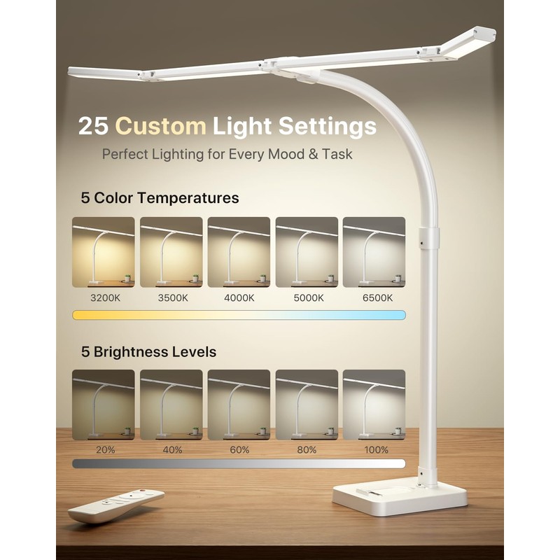 - Adjustable Color Temperature & Brightness: This desk light features 5 brightness levels and 5 color temperatures (3200K–6500K), giving you full control to create the perfect lighting for any task. Whether you're working, reading, crafting, studying, or winding down, enjoy customized comfort and clarity throughout your day.