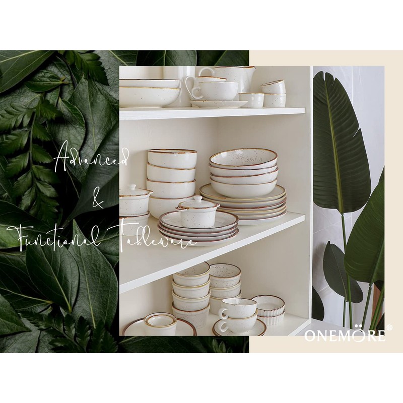 ONEMORE Ceramic Plates Set of 6, 8.5 inch Small Dinner Plates for Appetizer, Salad and Dessert. Oven, Microwave and Dishwasher Safe Plate. Rustic Kitchen Porcelain Dish - Cream White