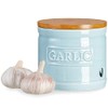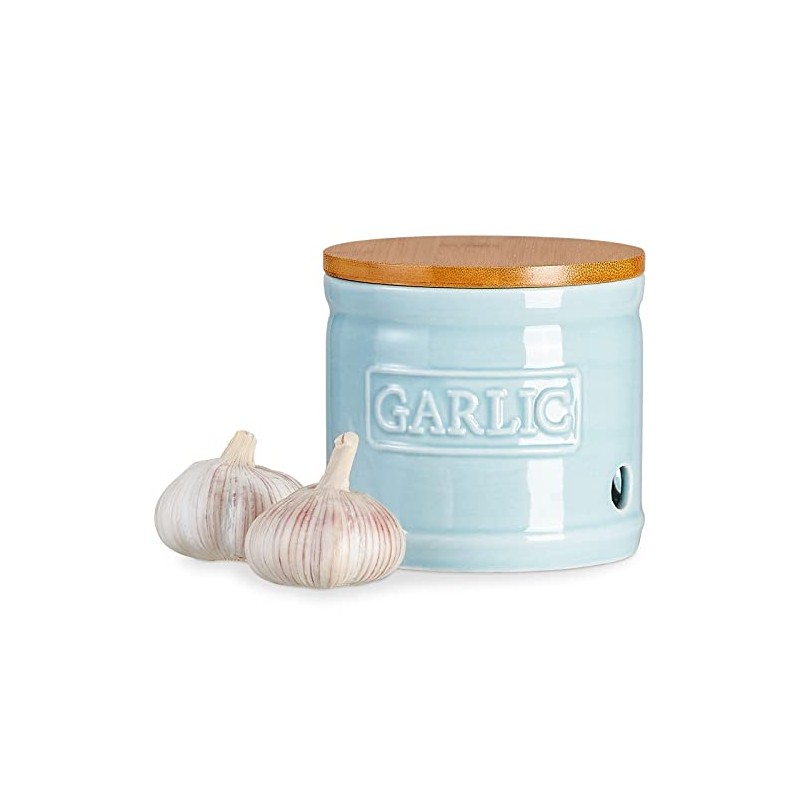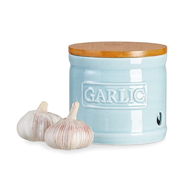 ONEMORE Garlic Keeper with Lid, Ceramic Garlic Saver 4 inch, Light Blue