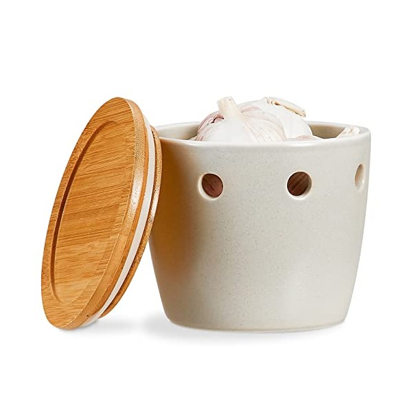 - 【Keeping Garlic Fresh and Dry】: A few small holes are designed to ventilate and breathe throughout the container, keeping the garlic fresh and dry. And the wooden lid protects from exposure to sunlight, prevents dust intrusion, and prolongs the life of food.