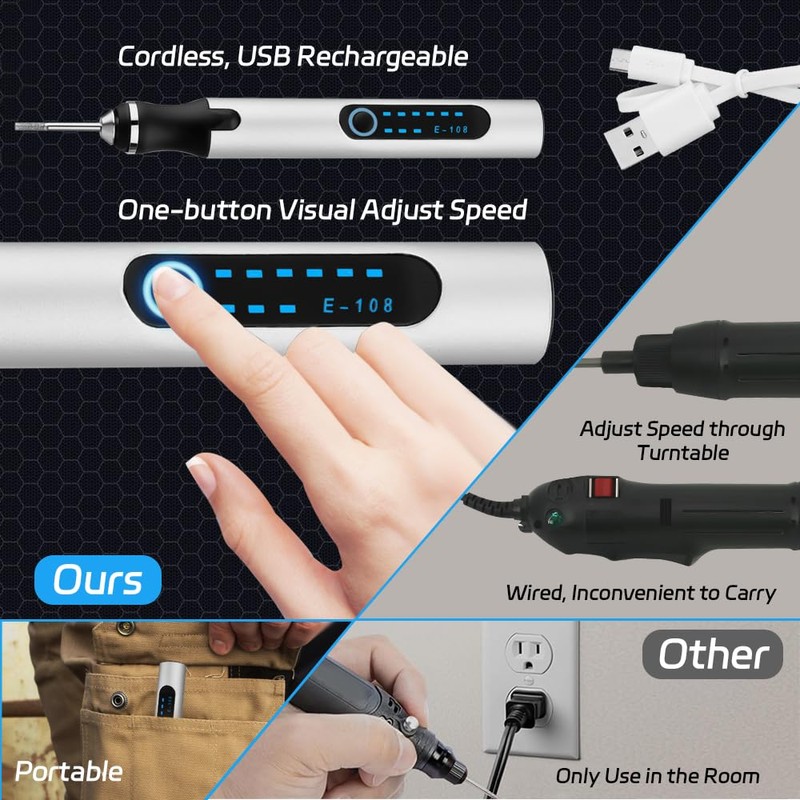 - Low Noise: This cordless rotary tool is whisper-quiet during operation, making it perfect for both beginners and professionals who need to engrave in peace and quiet. The low noise level ensures you can work without distraction, allowing you to focus on the creative process and produce unique creations.