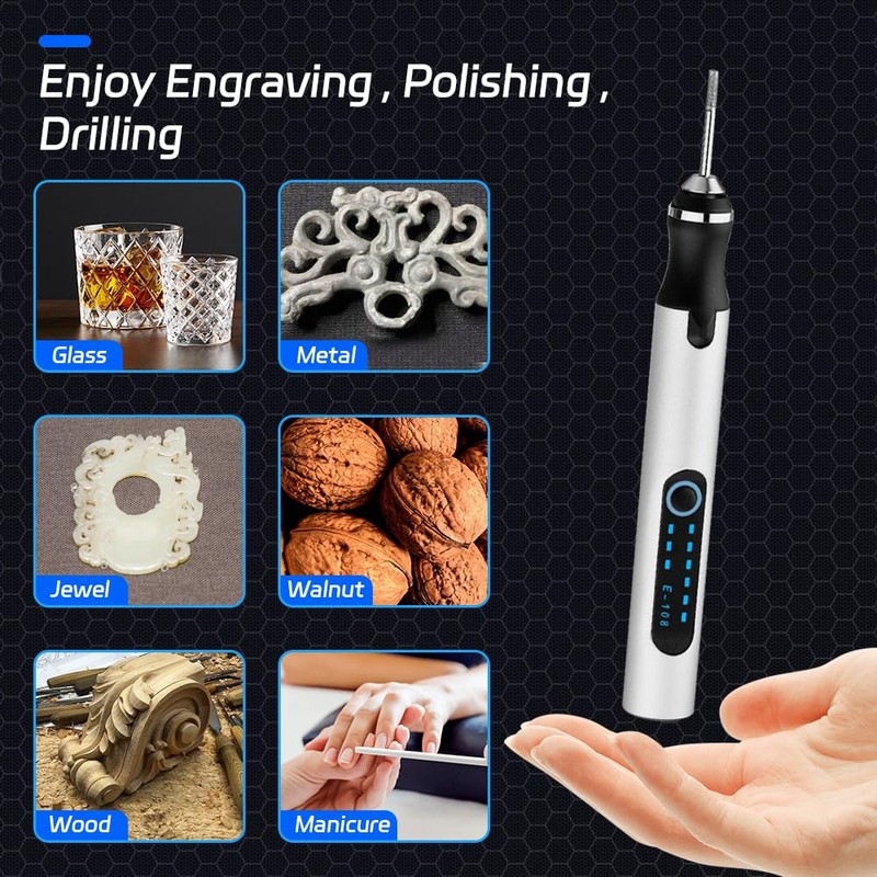 - Comprehensive Kit: The kit comes with 30 engraving bits, 3 saw bits, 1 connecting stick, 2 drill bits, 1 polish bit, 5 stencils, and a USB charging cable. The comprehensive kit provides you with all the tools and accessories you need to tackle a wide range of engraving, carving, sanding, polishing, etching, routing, grinding, drilling, and cutting projects.