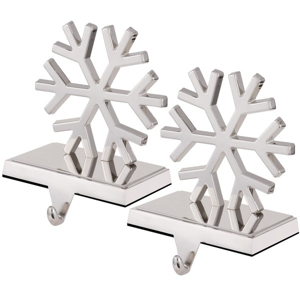 ONEPTY 2 Set Silver Stocking Holder Xmas Snowflake Stocking Hanger for Mantel Christmas Stocking Holder for Fireplace Mantle Heavy Stocking Hooks for Mantle (Silver Snowflake,2)