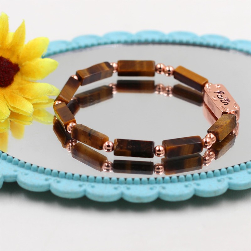 Oneress Inspirational Faith Bracelet Christian Jewelry Gifts, Natural Yellow Tiger Eye Stone Beaded Stretch Bracelets for Women YA4824