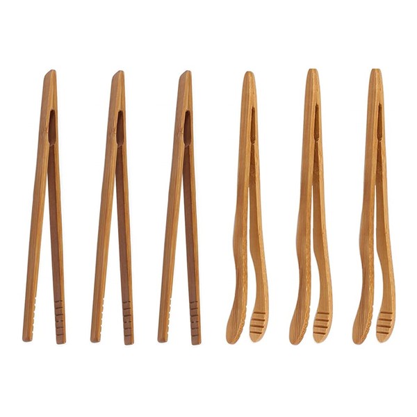 - 🌟【New Upgrade Version】Toast Tongs 2020 Upgrade Version(6-Pack of Two Sizes),3 pcs 7in straight bamboo tongs+3 pcs 6.9in bent bamboo tongs,lightweight and durable to use.Prefect for picking & serving appetizers, picking up cheese, fruits or vegetables from a platter, grabbing toast from the toaster.