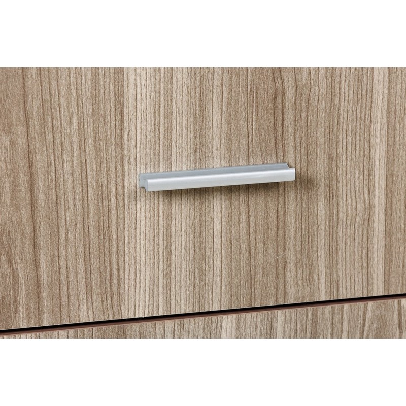 - Easy-to-assemble, modern design constructed of engineered wood with wood grain paper laminate