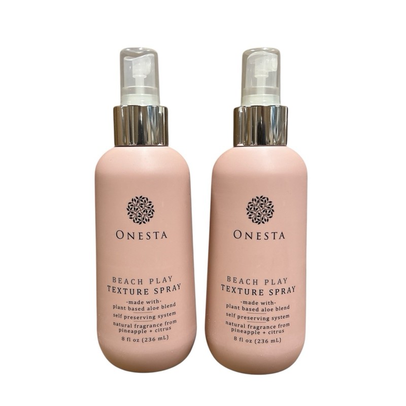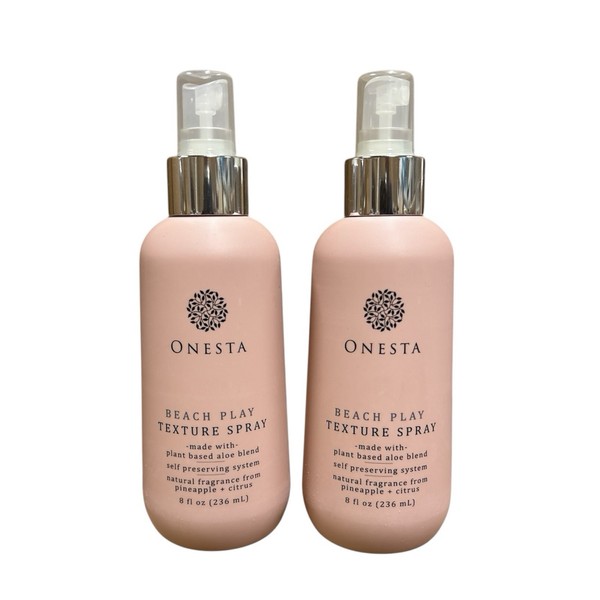 Onesta BEACH PLAY Texture Spray 8 oz. Pack of 2. A plant based with zero preservatives. Our texturizing formula is made with Aloe Juice and Brazilian Sea Salt to help create beautiful beachy waves. Sea Kelp, Pineapple and Papaya add moisture and leave hair with a sexy texturized style.