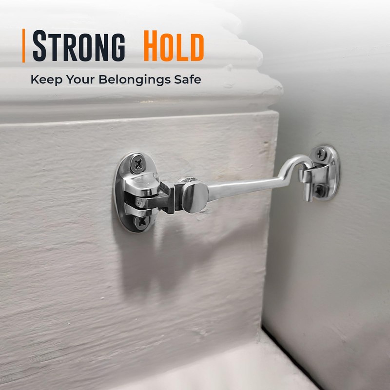 - DURABILITY AND STABILITY : This Chrome door hook lock is made of polished Chrome-plated material, making it stable, durable, and corrosion-resistant