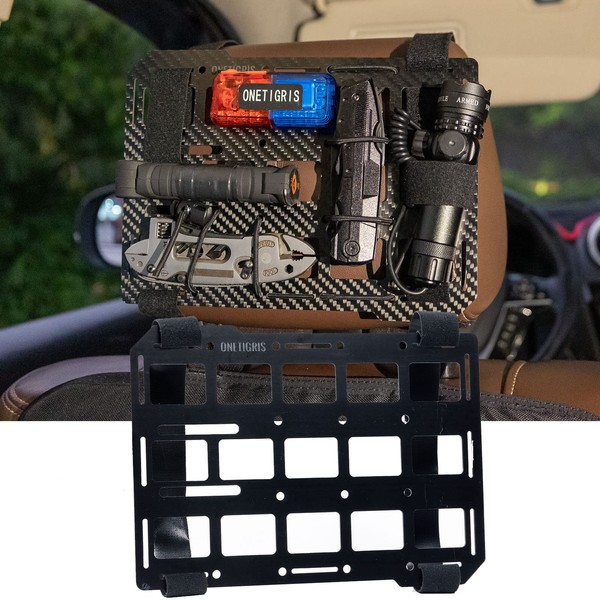 ONETIGRIS Car Headrest Organizer Molle Panel, Rigid Molle Headrest Panel Universal Tactical Molle Seat Back Organizer Backpack Insert Panel for Vehicles Cars Trucks Modular Storage & Display