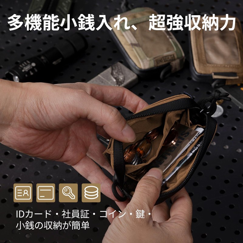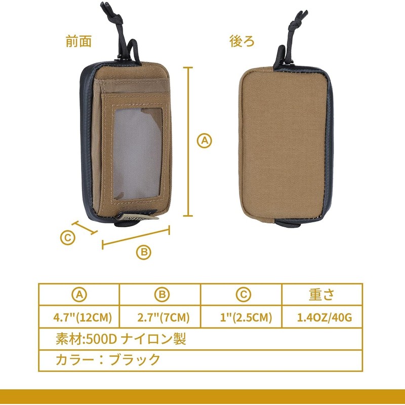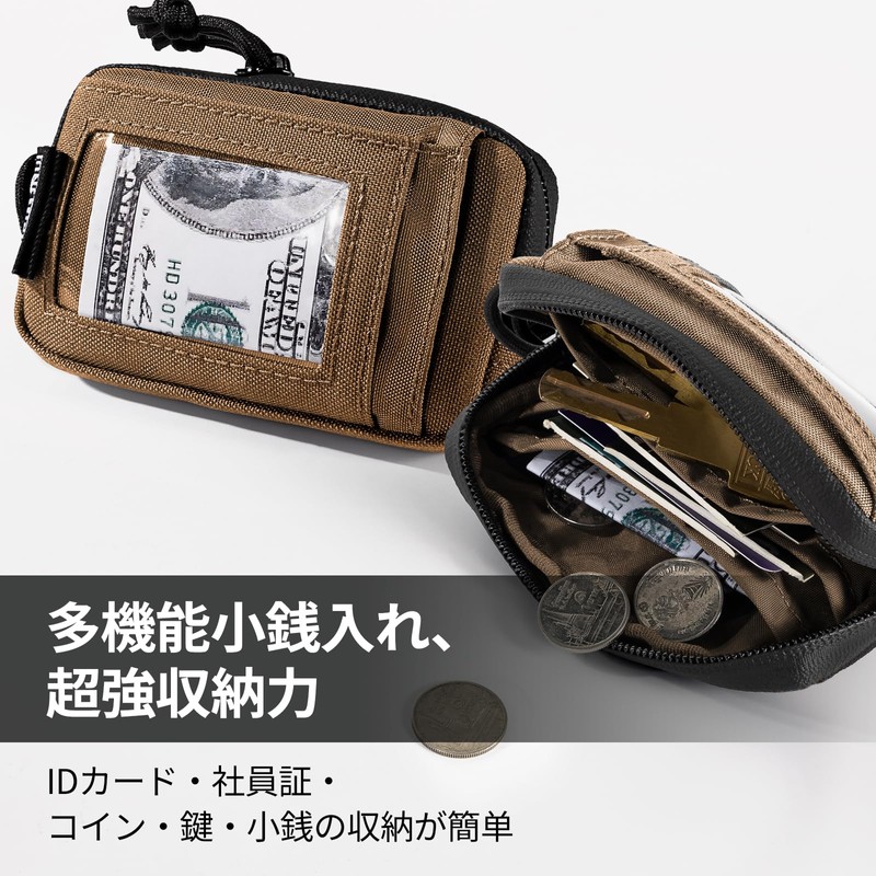 - Specifications: Coin purse size: 4.7 x 2.8 x 0.8 inches (12 x 7 x 2 cm); Weight: 1.6 oz (45 g); Colors: Black, Brown, Camo, Black Camo