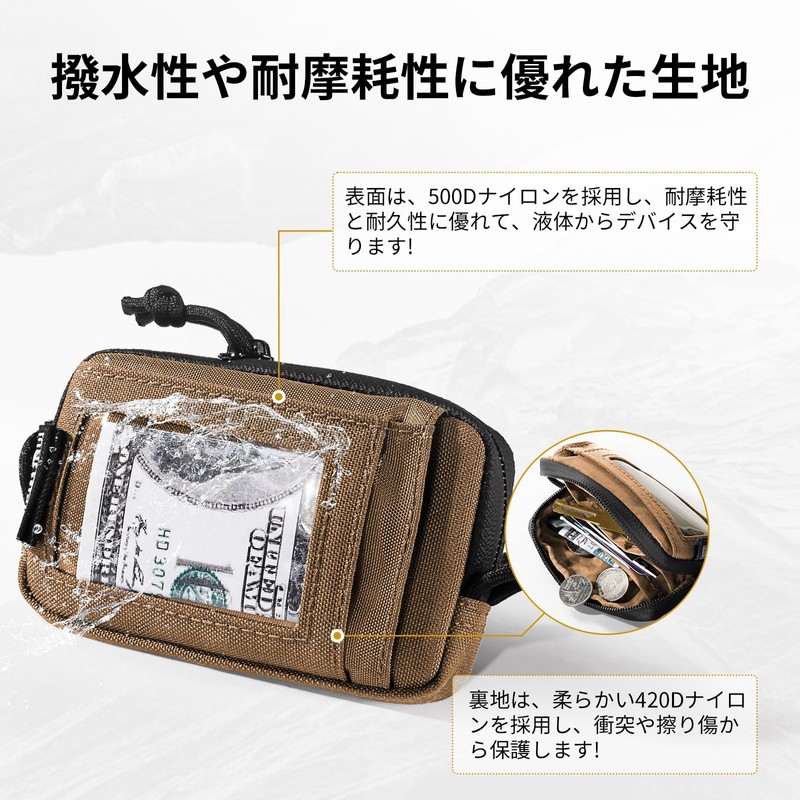 OneTigris Cassette Card Case Coin Case Waterproof Zipper Nylon, Braun