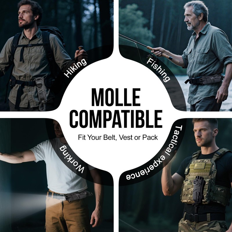 - HEAVY DUTY CONSTRUCT: 1000D Nylon construction for extra reliability and dirt/water/abrasion resistance; Lightweight, convenient flashlight belt holster for easily access
