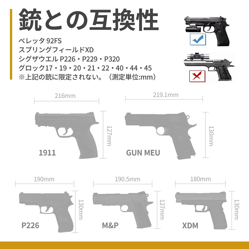 - Fits most handguns.For example: the Glock 1911, 45, 92, 96. Please make sure to check the size of your gun before purchasing.
