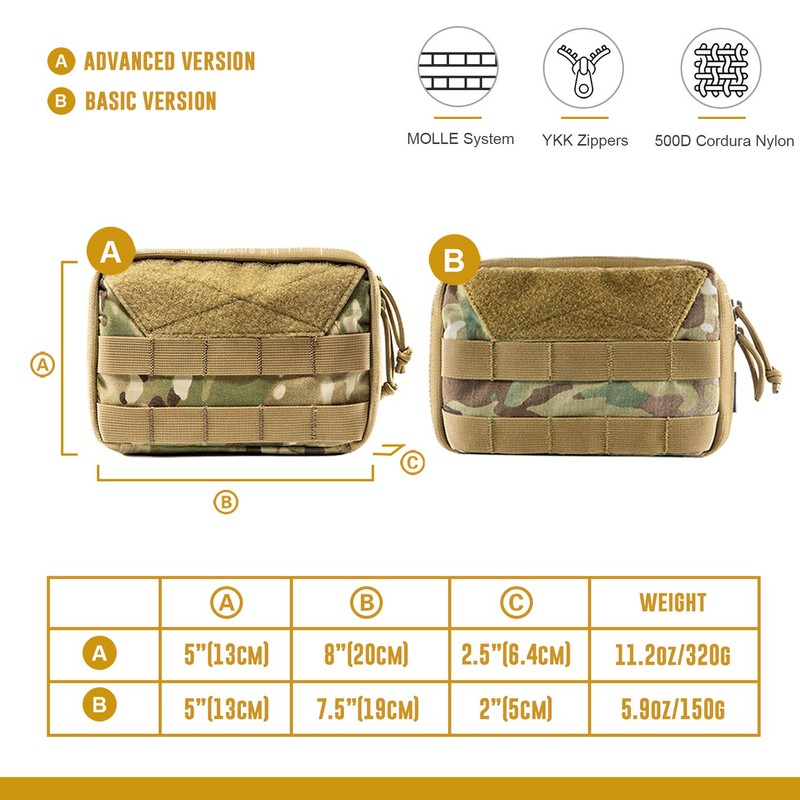 - Two-way Zippered MOLLE Pouch: Ideal for every day carry, travels, outdoor activities, etc.
