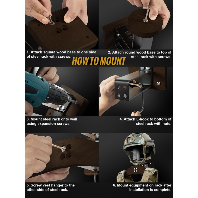 - Easy and Hassle-Free Installation: This helmet and vest display wall mount can be easily installed on walls or wooden boards, and comes with a corresponding manual to guide you through the installation process. You won't have to worry about complicated installation procedures or hiring a professional to install it for you