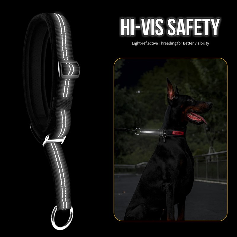 OneTigris Reflective Martingale Dog Choke Collar,P-shaped Training Canine Collar with Hi-vis Nighttime Safety Light-reflective Design for Narrow Head Canines Ease Walking(Black, XL)
