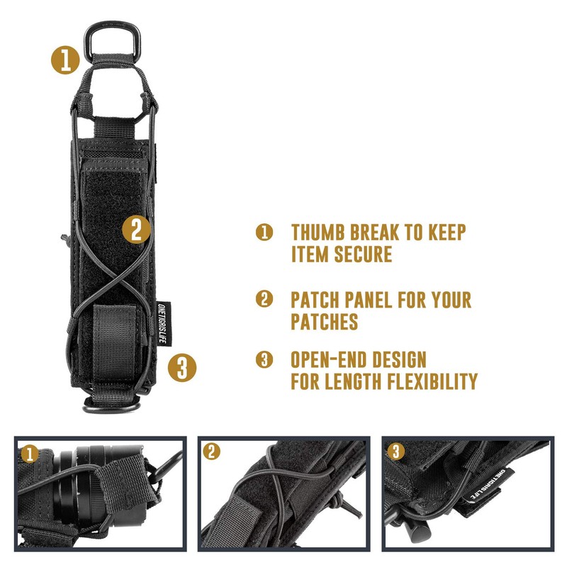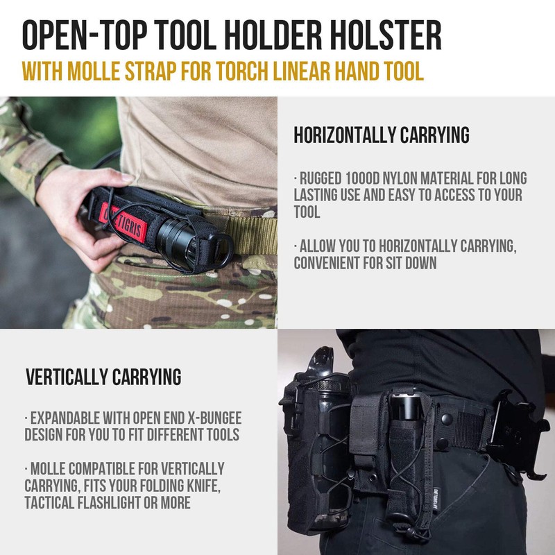 OneTigris Tactical Flashlight Holster Open-top Holder Pouch for Torch Linear Hand Tool with MOLLE Strap for Vertical & Horizontal Carrying (Black)