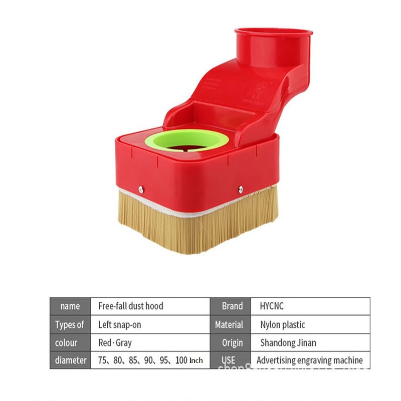 Fit for spindle with a diameter of 2.95″(75mm) Good at cleaning dust Easy to assemble and install Easy to pops off for tool changes Easy to change bits with the removable hose connection and quickly reconnect it