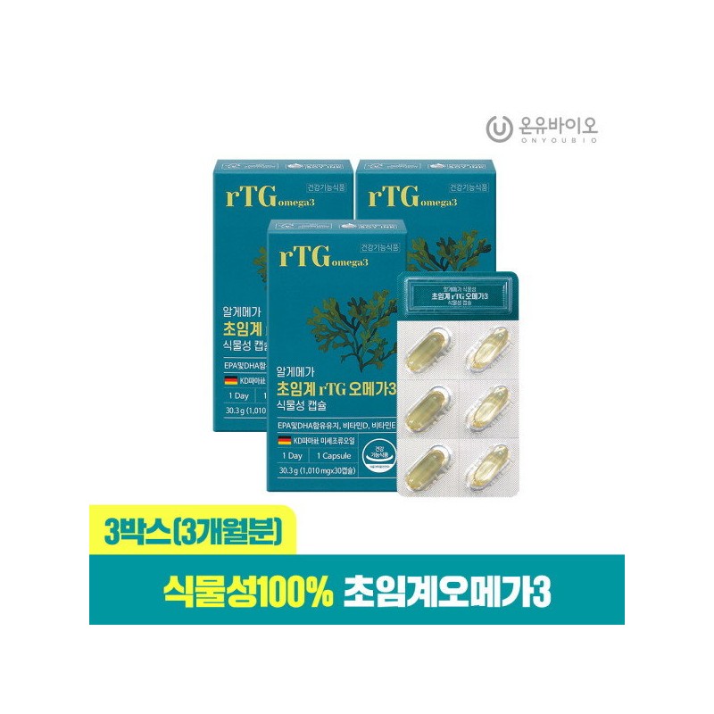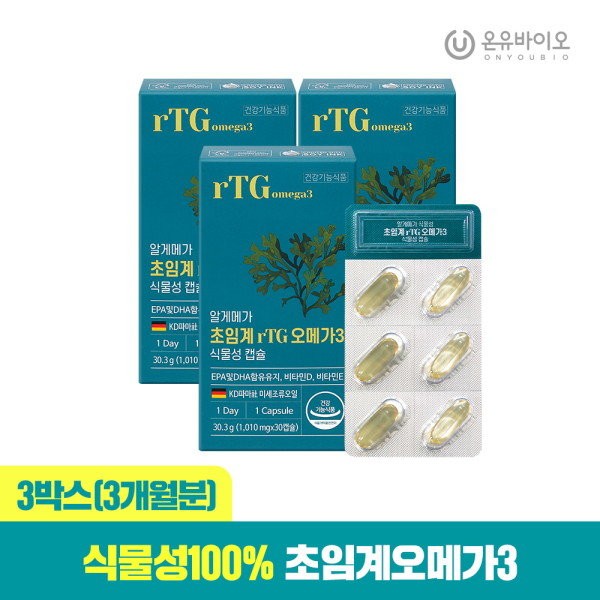 [Onew Bio] Premium Algemega vegetable supercritical rTG omega 3 3 boxes (total 3 months) / [온유바이오] 프리미엄 알게메가 식물성 초임계 rTG 오메가3 3박스(총3개월