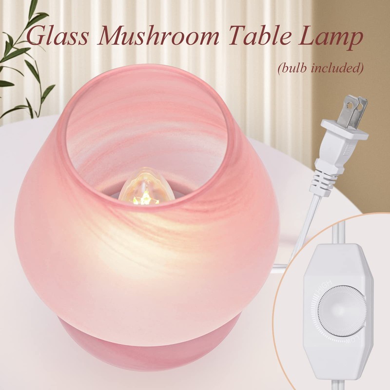 - [Murano Style Pink Table Lamp]: ONEWISH mushroom-shaped small lamp is an adorable lighting full of Murano style, its design capitalizes on the beauty of its fascinating interaction of transparency and opacity. Classic of the 60s-70s vintage lamp design, would look good in any location!