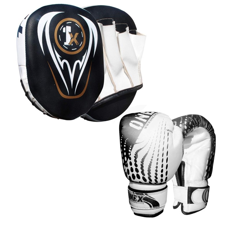ONEX Boxing Set, Boxing Gloves, Kids Focus Pad, Boxing Set, Punching Bag Set, Target Boxing Set, Training Set, MMA Set, Training Set, Hook & Jab Strike Pads (Black Set)