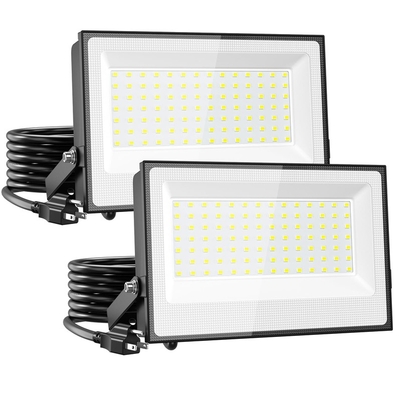 Onforu 120W Flood Lights Outdoor, 12000lm Bright LED Work Light with Plug, 6500K Daylight White LED Flood Lighting, IP66 Waterproof Security Yard Lights for Yard Garage Stadium 2 Pack