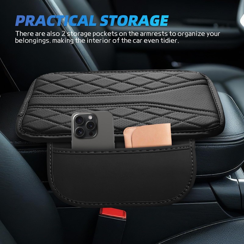 - 【Practical Storage】: The armrest mat also has 2 storage pockets, which can store cell phones, coins, cards, keys and other small items, avoiding their scattering and making the interior space of the car neater and tidier. And you can quickly access the items whenever you want, no need to rummage around, which is convenient.
