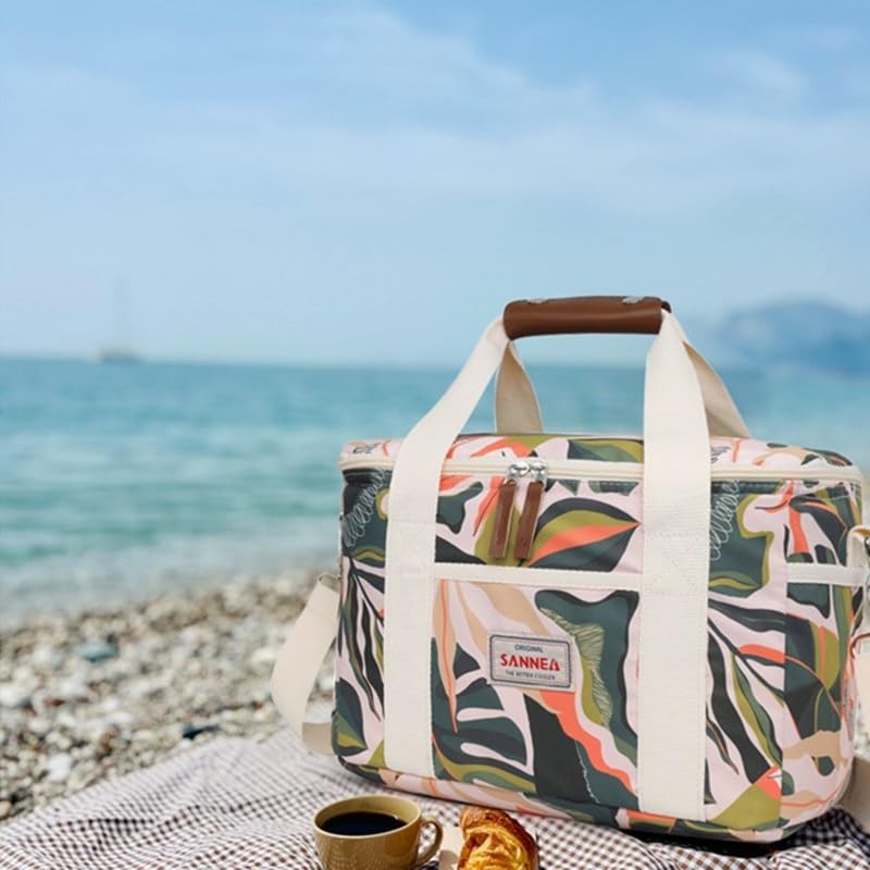 ONGLYP Insulated Lunch Bag for Women and Men,Lightweight Reusable Cooler Tote Bag for Picnic Beach,Waterproof Stripe Lunch Box for Office Work (Leaf, 14L)