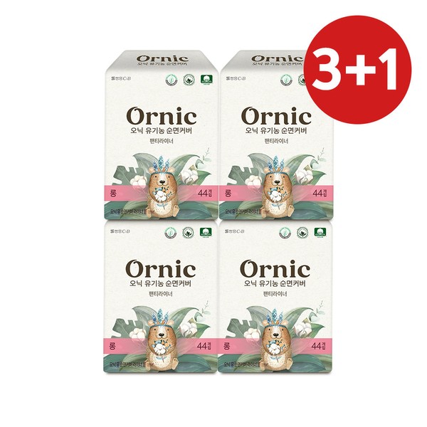 Onic organic cotton cover panty liner long 44p 3+1 pack / 오닉 유기농 순면커버 팬티라이너 롱 44p 3+1팩