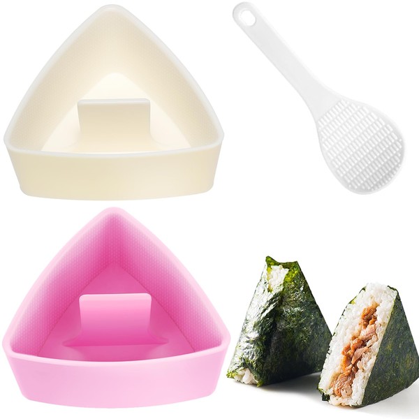 - 【Large Triangle Mold】You'll receive 2 rice ball molds (pink & beige) with a small rice paddle, which are made of thick, highly durable materials. Bring you a good kitchen tool to make your DIY sushi. Share the japanese rice ball with your family and friends, kids especially like it.