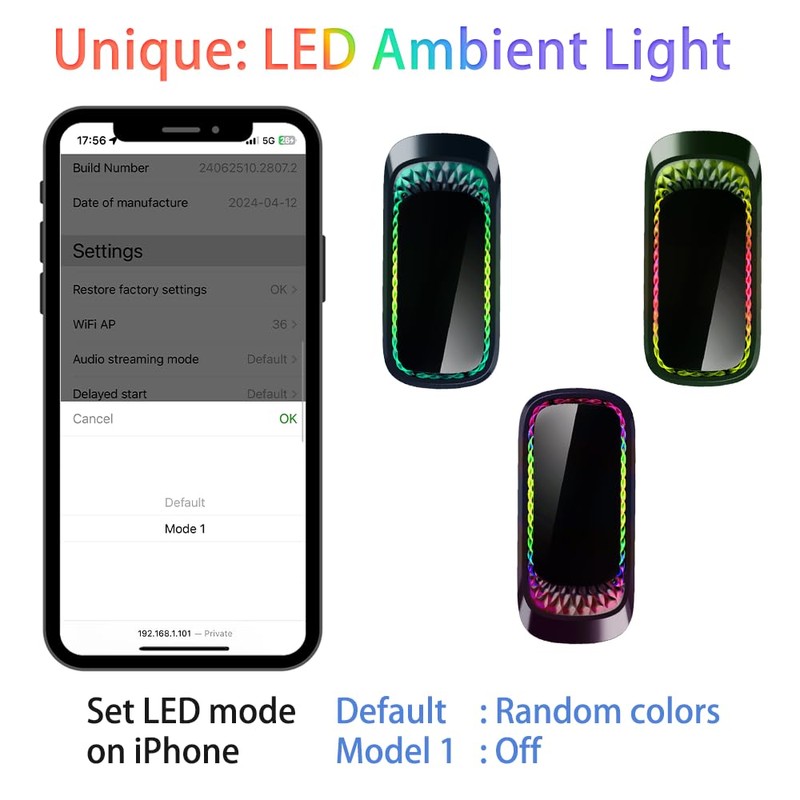 - 【7-Color LED Lights】7-color ambient lights, two operating modes: random colors or OFF.