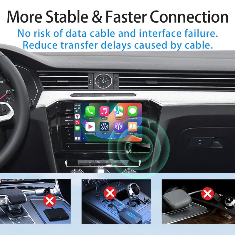 - 【CarPlay Wireless Adapter】Easy to convert your wired Carplay to wireless with Carplay wireless dongle! You can continue to use the full Carplay function and keep the original car operation, such as navigation, music playing, Siri assistant, phone calls, etc.