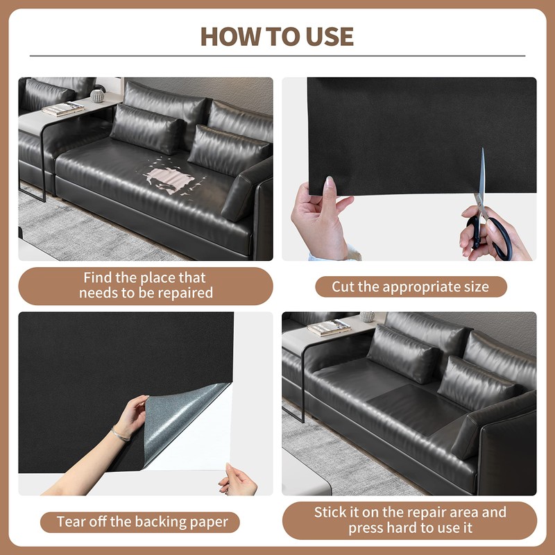 - Wide Applications: leather tape for furniture for repairing/refurbishing sofas, leather recliners, car seats, motorcycle seats, leather furniture, wallets, boots, leather jackets, belts, luggage, and vinyl leather furniture.