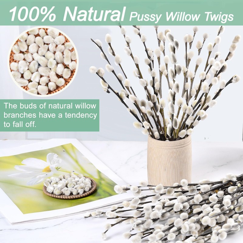 - Long-lasting natural beauty - no maintenance required:Made of real willow, each branch is covered with soft and fluffy buds that will not fade or wither. Enjoy the charm of spring all year round - no watering, no direct sunlight required. Just put it in a vase or use it for decoration to enjoy the natural beauty