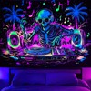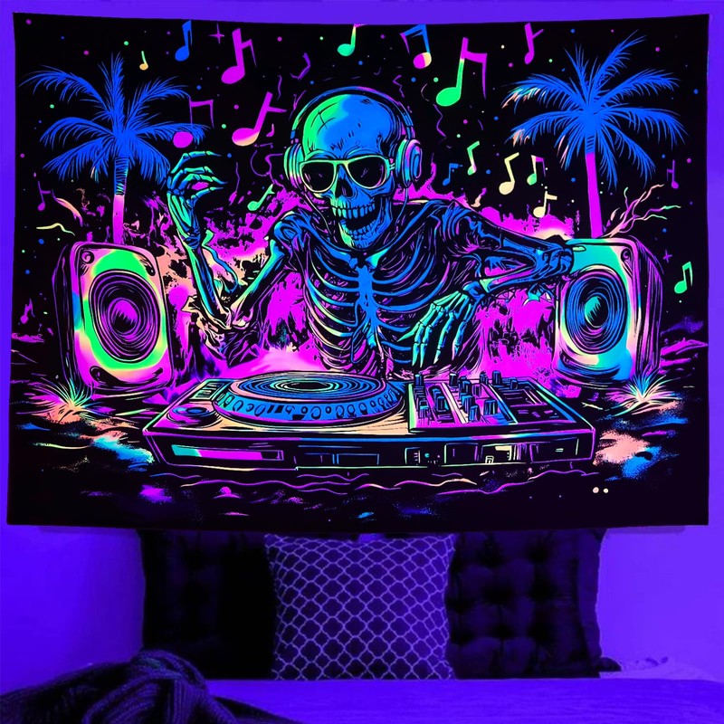 Onivein Blacklight Skull Tapestry UV Reactive Skeleton Tapestry Funny Music Tapestry Gothic Hip Hop Hippie Wall Hanging Tapestries for Bedroom Dorm Game Room Party Decor (51.2 x 59.1 inches)