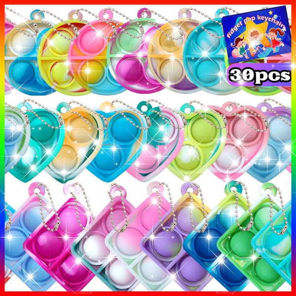 ONKULL ONKULL Pop Fidget Keychain It Mini Fidget Toys Bulk 30 Pack Party Favors for Kids 4-8,8-12 Year Boys Girls Push Pops Bulk Toys Its Small Prizes for Kids Classroom Birthday Party Favors Bubble Poppers