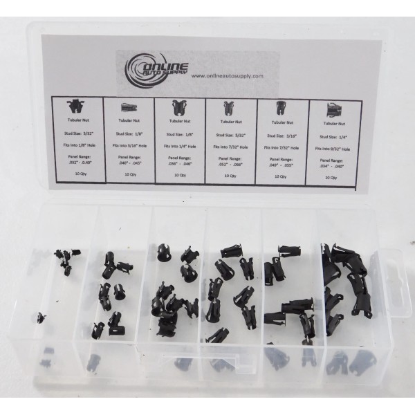 Online Auto Supply 60 pcs 6 Sizes Emblem Script Clips Barrel Tubular Nuts GM GMC Assortment