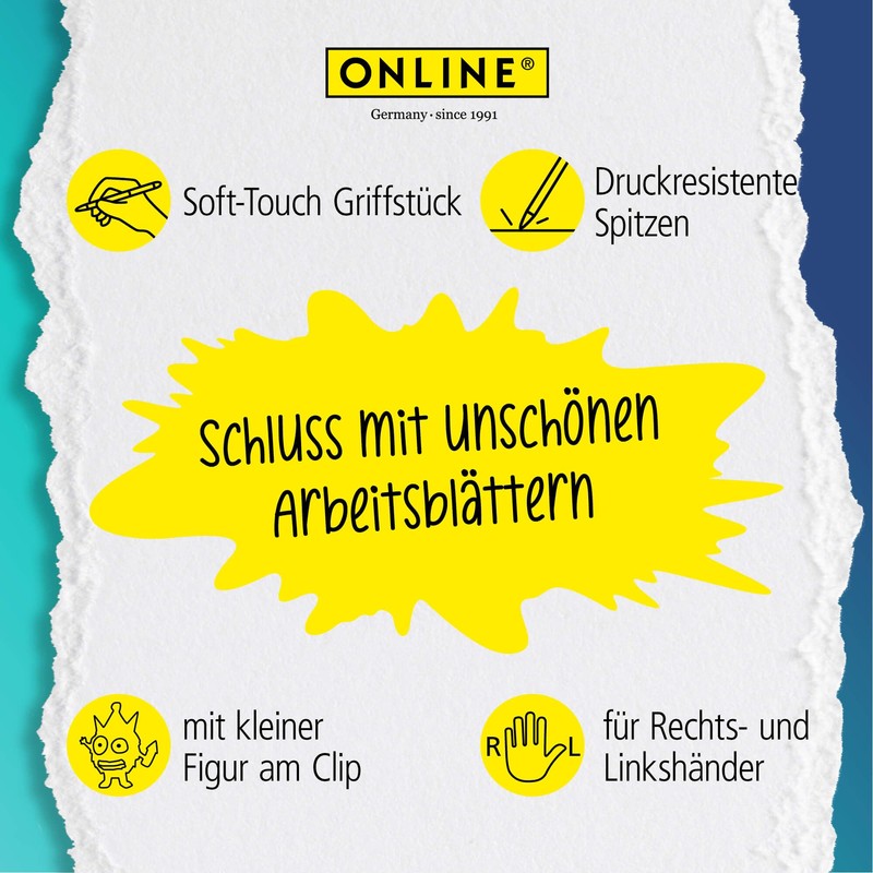 • Offline with online – the online brand quality: We at Online are a German family business that has been producing high-quality, innovative, functional and carefully designed stationery since 1991 and has taken writing lovers into the world of creativity.