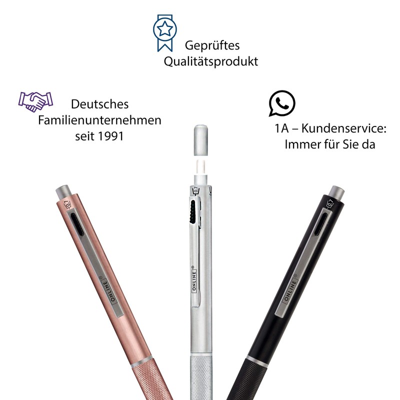 - MECHANICAL PENCIL: Some surfaces or motives don’t work for ballpens. That’s why this multipen has also a 0,7 mm pencil lead. To ease the exchange, we use a standard small lead.