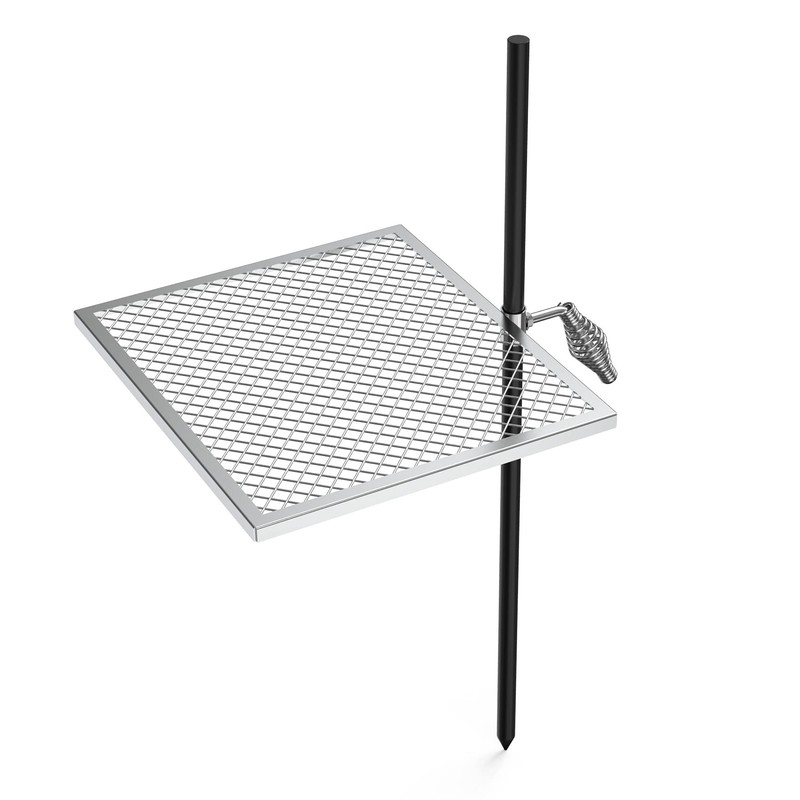 - The spiral handle is convenient for one-handed operation and it helps you lock the grate in place more conveniently. Also, if you remove the handle, the grate can be 360°rotated and adjusted to any height as your wish to fit the campfire.