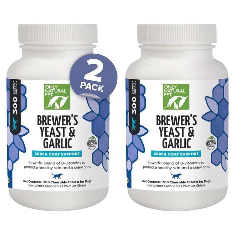 Only Natural Pet Brewer's Yeast & Garlic Chewables - All-Natural Flea & Tick Prevention for Dogs - Fortified with B Vitamins - Promotes Healthy Skin & Coat - 300 Count Tablet (2 Pack)