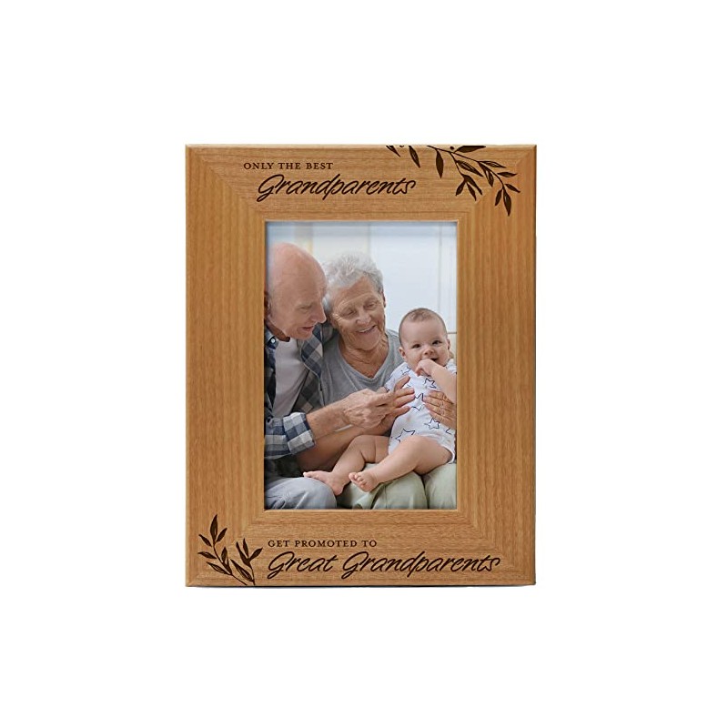 Only The Best Grandparents get Promoted to Great Grandparents, Engraved Natural Wood Photo Frame Fits 4x6 Vertical Portrait for Grandparents, Grandparent's Day, Grandma Gifts, Grandpa Gifts