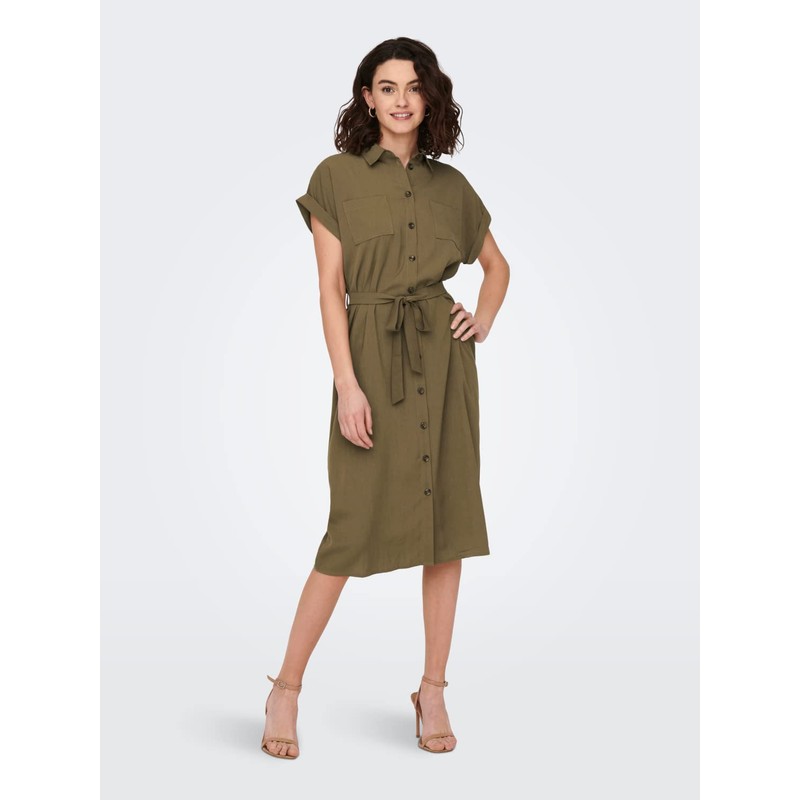- Plain shirt dress in midi length