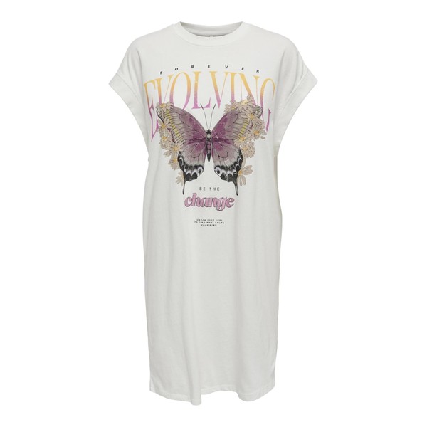 ONLY Women's Onllucy Life S/L Butterfly Dress Box JRS Jersey Dress, White