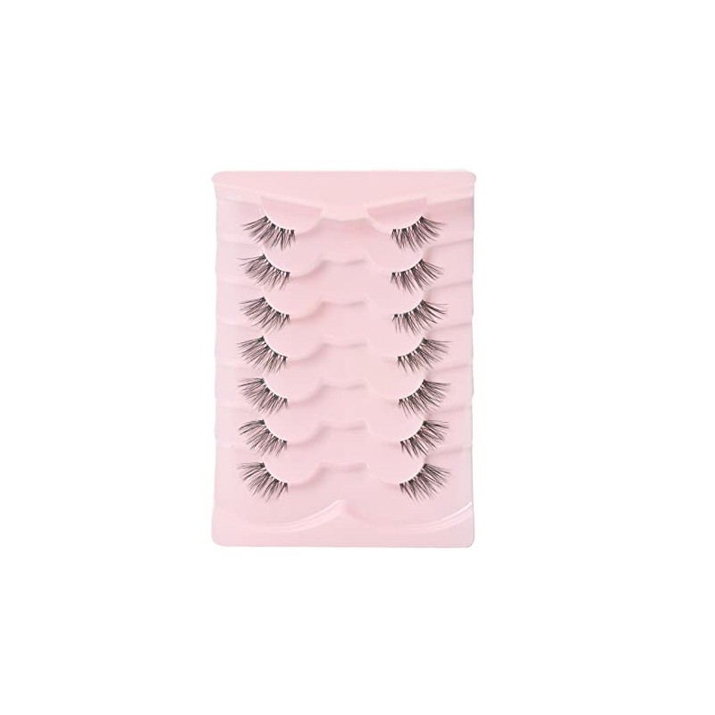 Onlyall Natural Lashes Half Lashes Natural Look False Eyelashes Wispy Lashes Natural Half Eyelashes Clear Band Lashes Pack 3D Faux Mink Lashes 7 Pairs C03