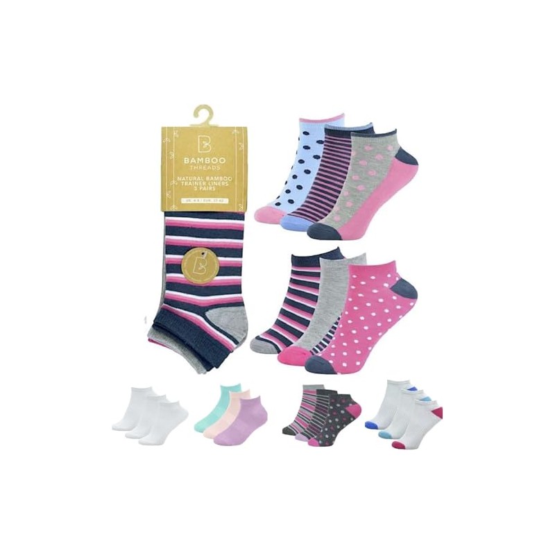 OnlyBee 6 Pairs of Ladies BAMBOO Trainer Ankle Socks (Mixed)