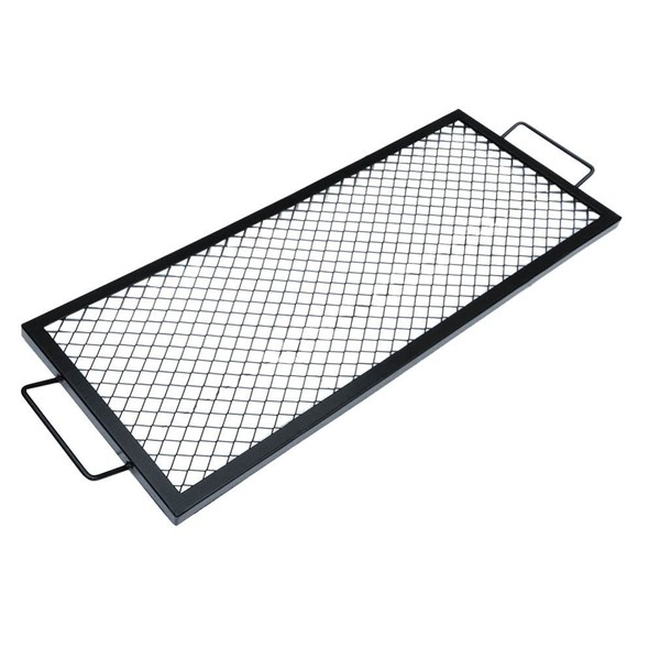 - The cooking grate features two solid steel handles for maneuvering around fire, perfect for cooking over the open fire and X-marks design to create perfect grill marks in food