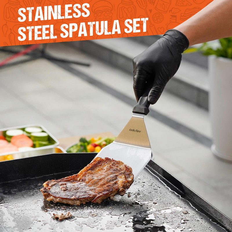 onlyfire Professional BBQ Griddle Spatula Set, Stainless Steel Griddle Spatula, Perforated Griddle Spatula & Griddle Scraper, Smash Burger kit for Grilling, Cooking & Cleaning