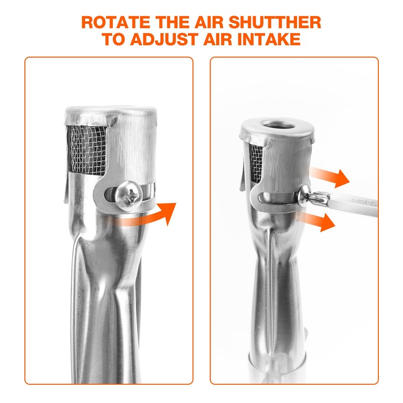 - Adjustable burner tube: 36 cm to 50 cm length, the hole for the nozzle diameter: 12 mm.